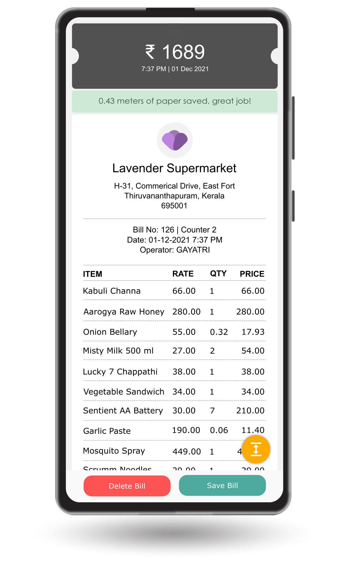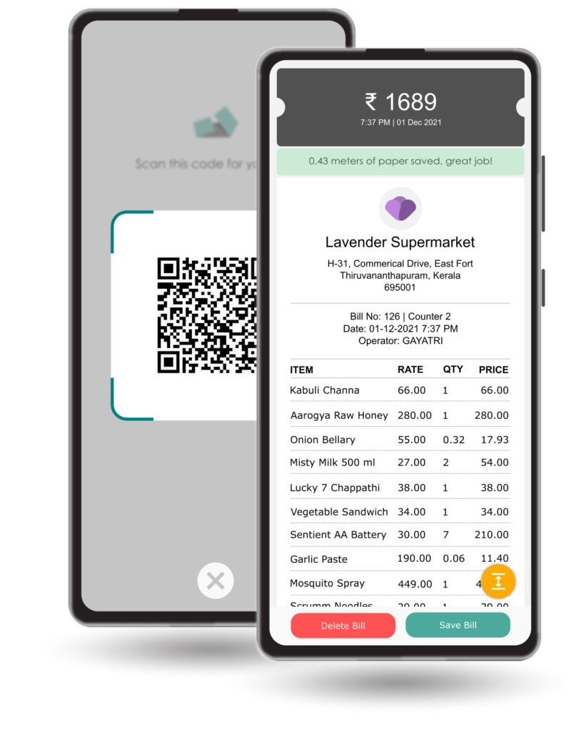 - Save your code-scanned bills & find them here.